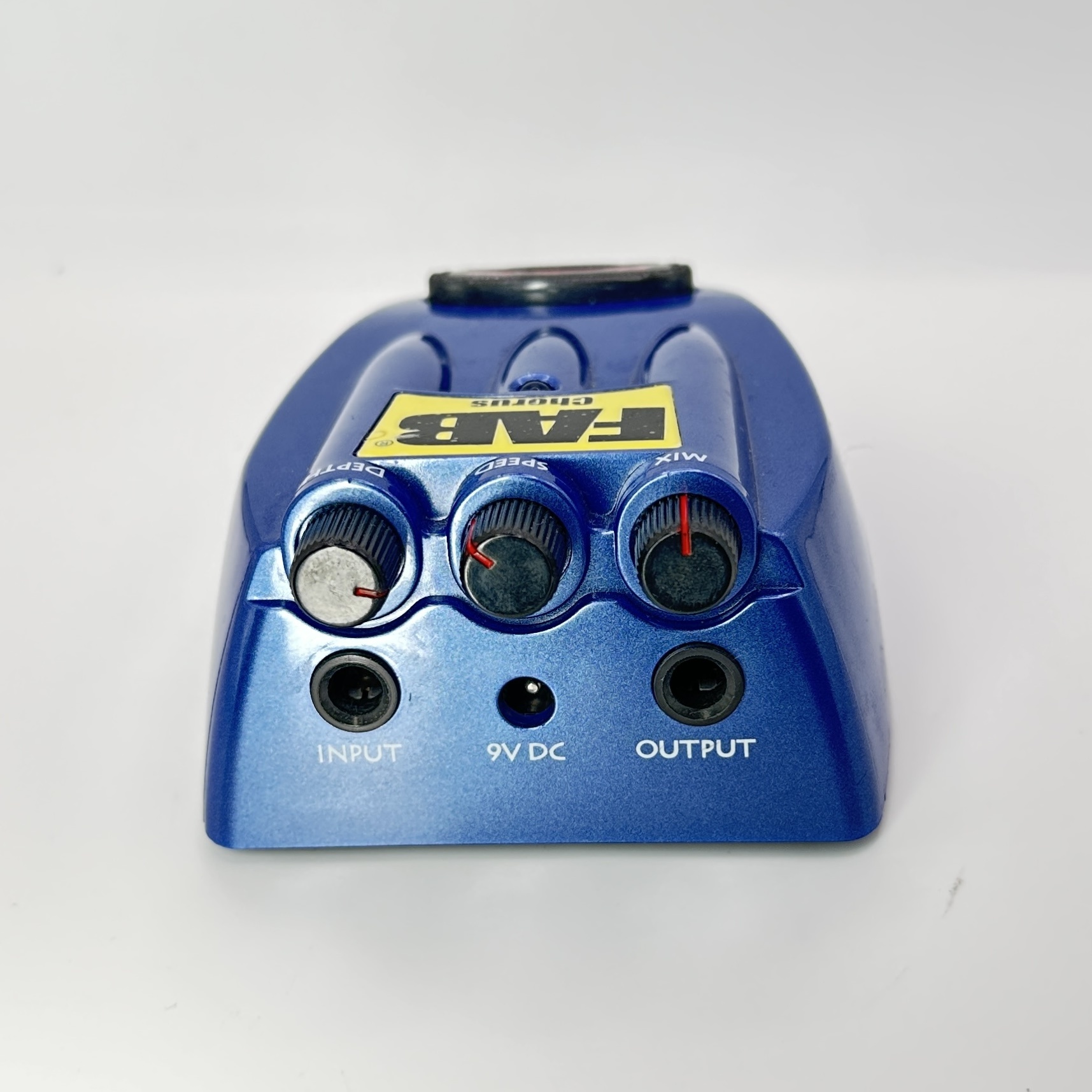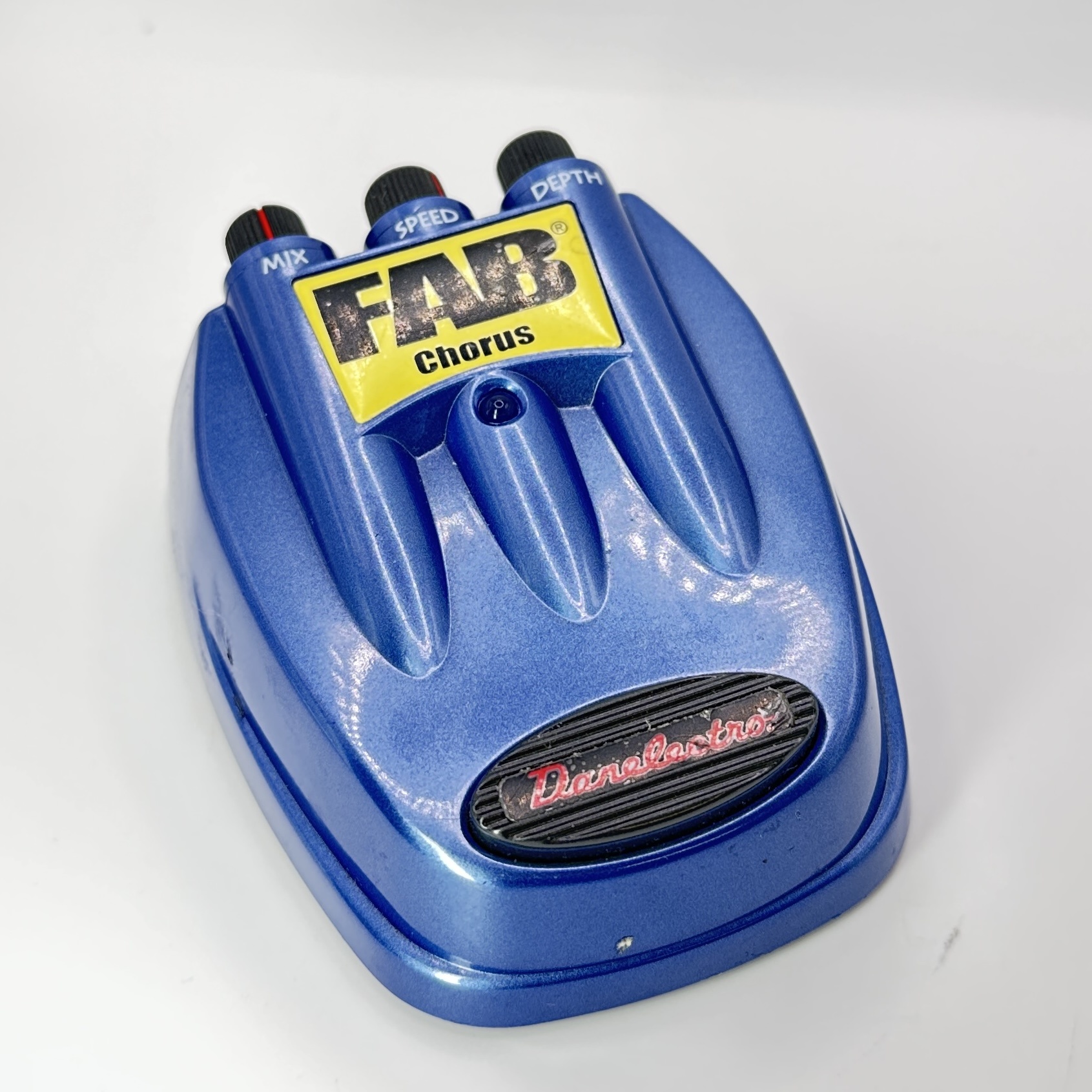Chorus is a great way to fatten your rhythms and add character to your leads. Now Dano lets you do it on a shoestring with the Danelectro FAB chorus. Full controls include mix, speed, depth, and effect on/off foot button. Cool retro-futuristic design is small and tough with a rubber base. Features Mix, speed, and depth controls Rugged and sharp design Large, springy button 9V operation, battery (not included) or optional adaptor Rubber base Runs on 9V battery or optional 9V DC adapter.