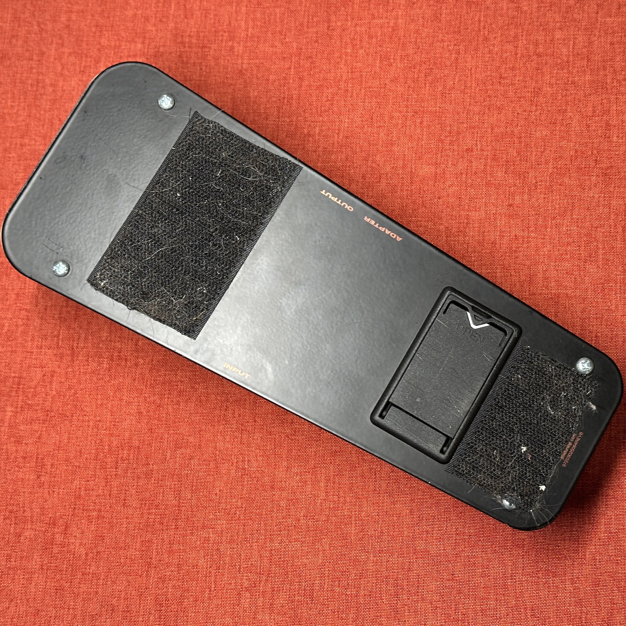 As pictured the pedals copper outside has a patina from use. There is velcro on the back.