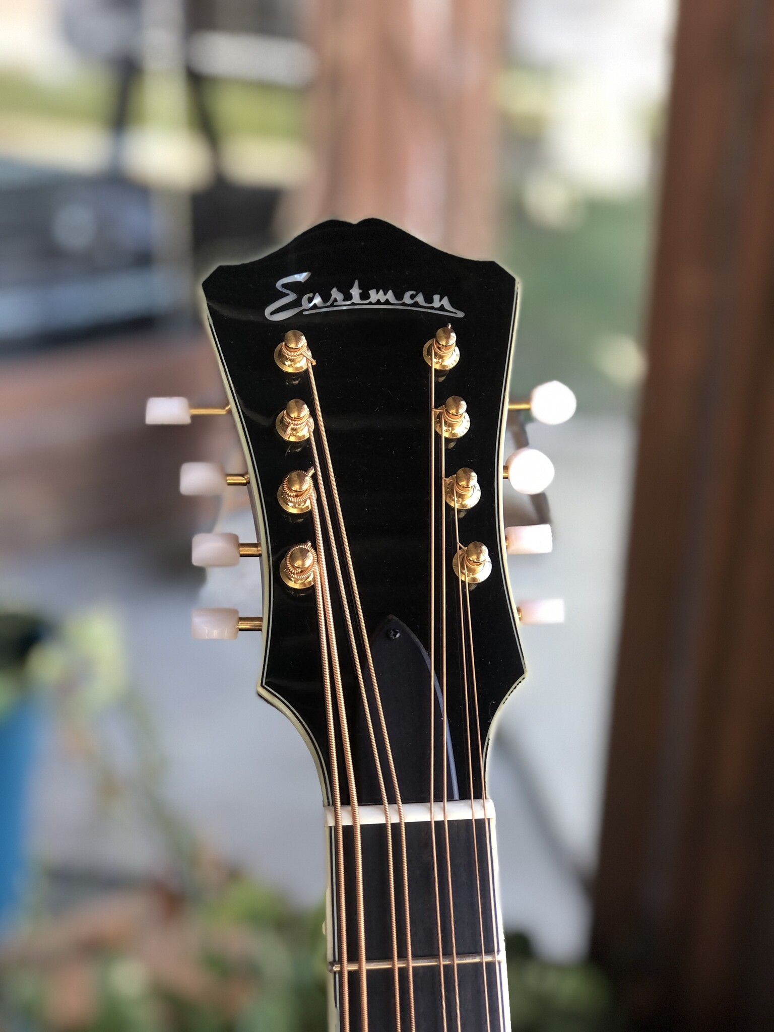 "The Eastman Mandocello is a masterfully crafted instrument that combines traditional design elements with exceptional playability. Its archtop body, adorned with an oval hole, features a solid spruce top and highly flamed solid maple back and sides, showcasing a beautiful blend of tonewoods. The ivoroid binding adds a touch of elegance to the top, back, fingerboard, and headstock.