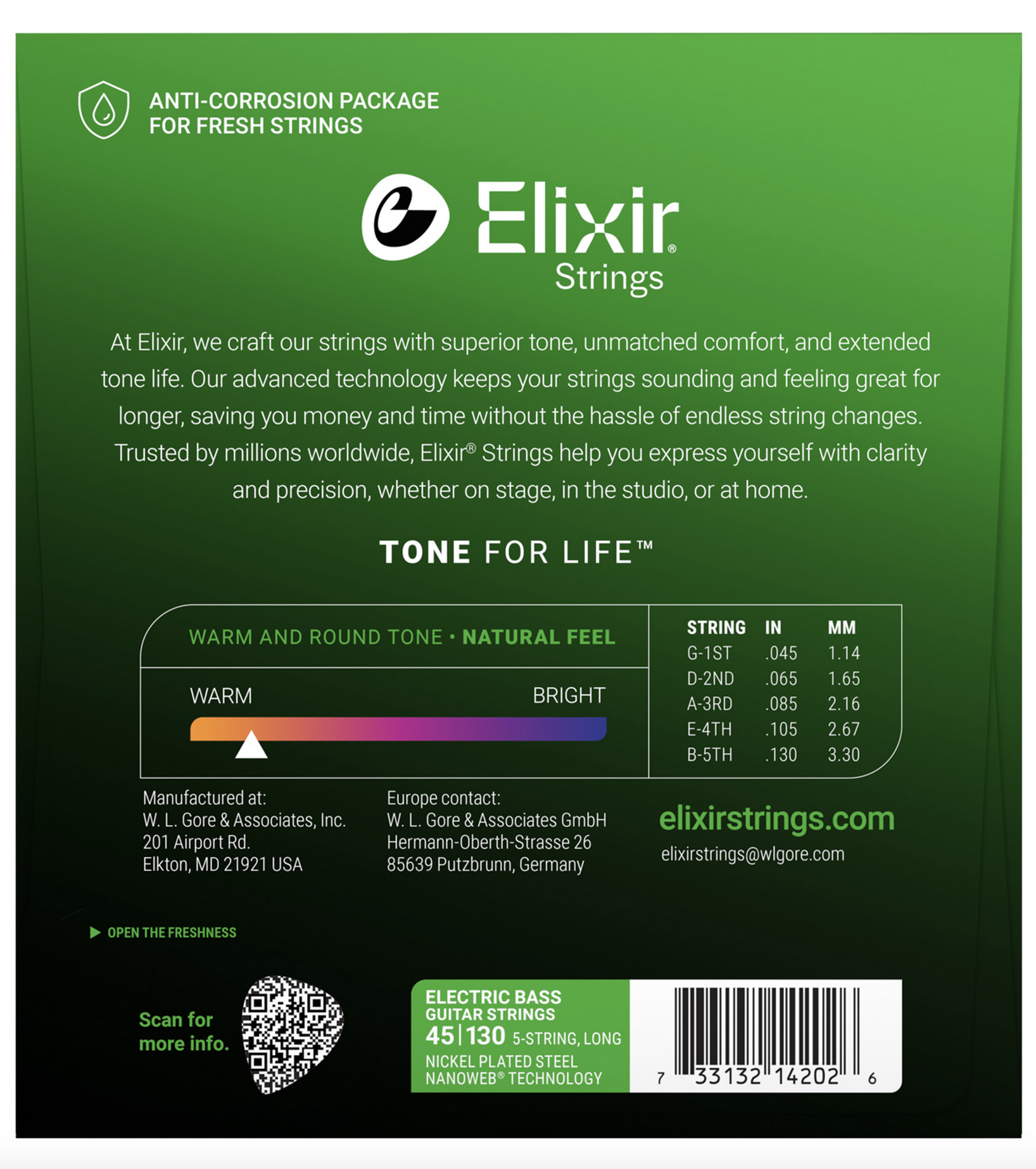 Play for longer without compromising tone and feel with what experienced players worldwide say are the best bass guitar strings on the market. Elixir Strings protects the whole string - not only the outer string surface but also the gaps between the windings where dirt, sweat and gunk build up killing your tone. Elixir Strings retain their out-of-the-box tone longer than any other brand’s strings.