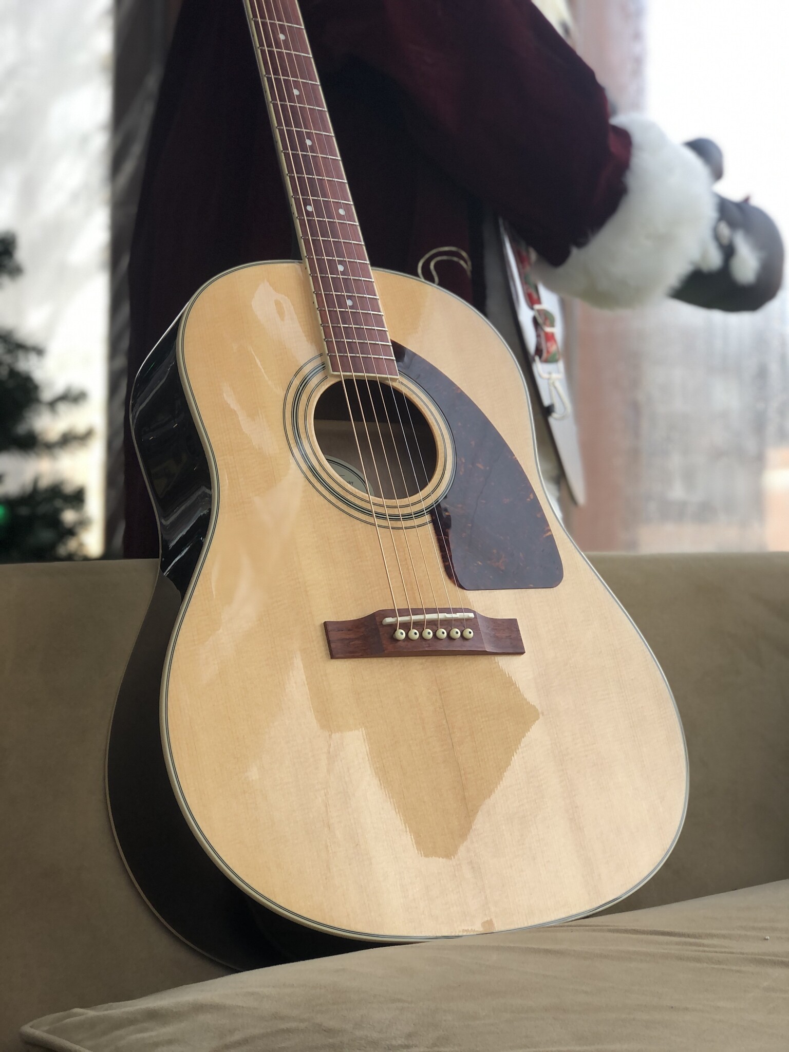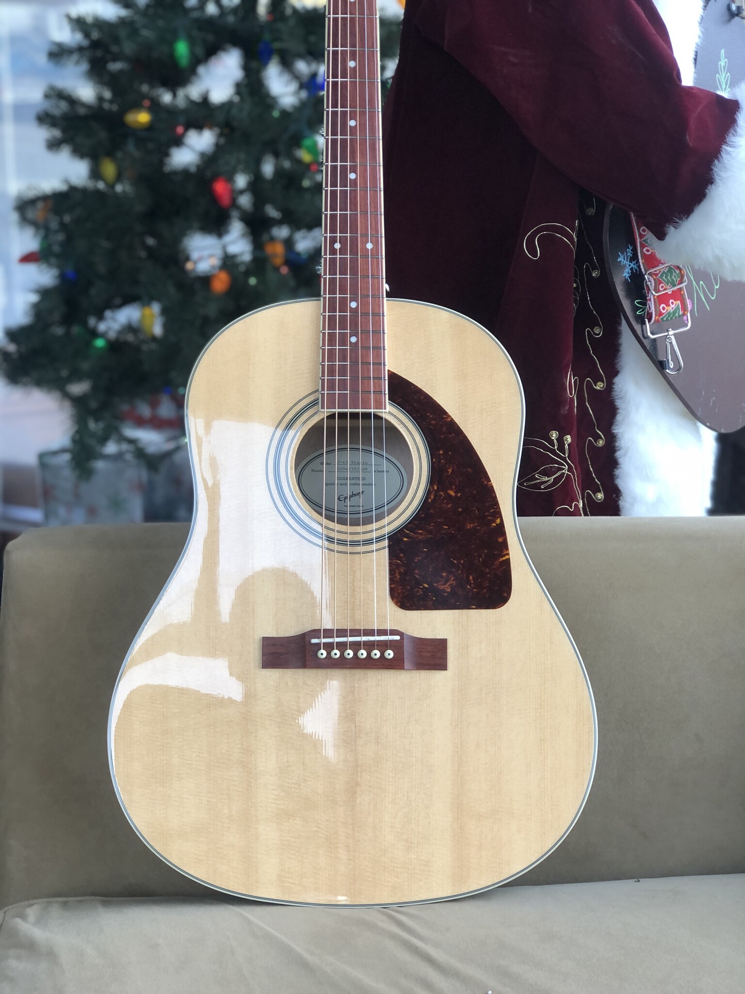 The Epiphone J-45 Studio is a right-handed, jumbo-shaped acoustic beast with a natural gloss finish that's gonna knock your socks off! Its solid Sitka spruce top is mated to mahogany back and sides, giving it a warm, balanced tone that's perfect for crunching chords or intricate fingerpicking. The slim-taper D neck and 12" radius make it a breeze to play, with 20 frets at your fingertips (literally – those pearloid dots are gonna guide you home every time). With its steel strings and 25.5" scale length, this guitar's got the projection and clarity to fill any room.
