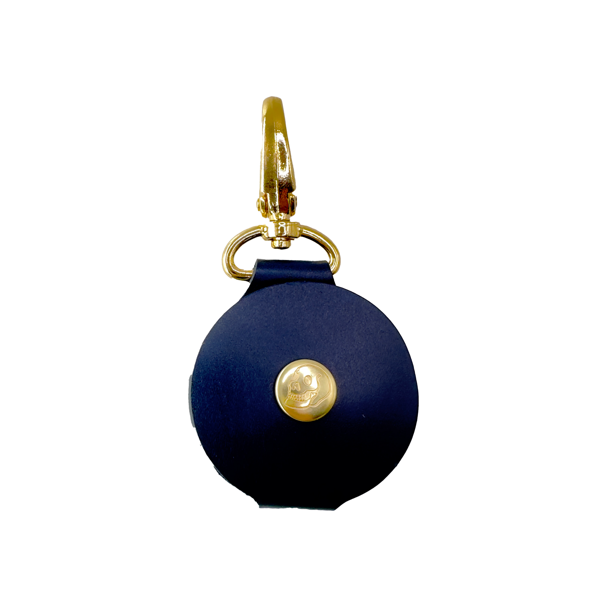 The holder features a Brass Swivel Clasp, Howl + Hide Skull Snap and Gold Indy String Theory Stamp.
