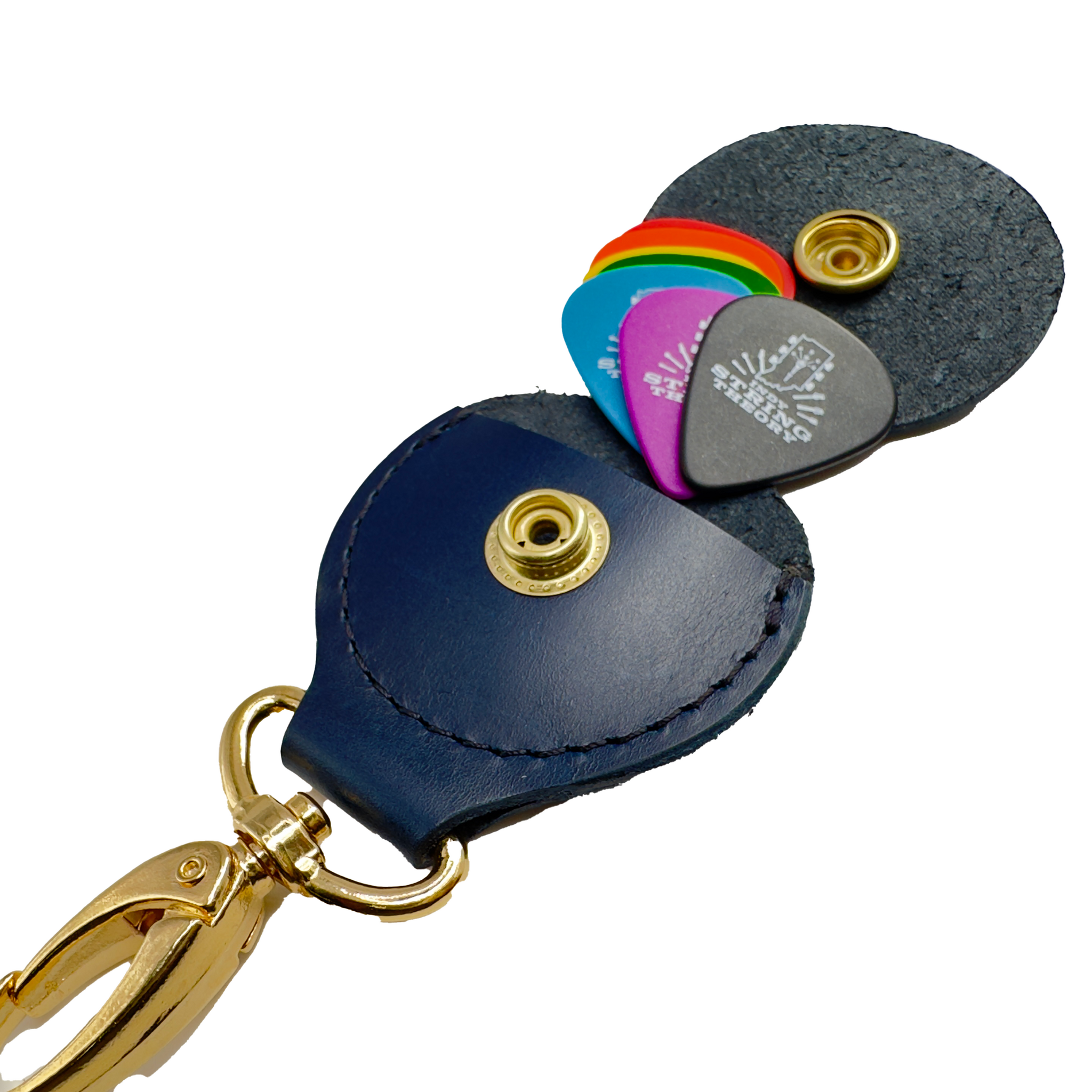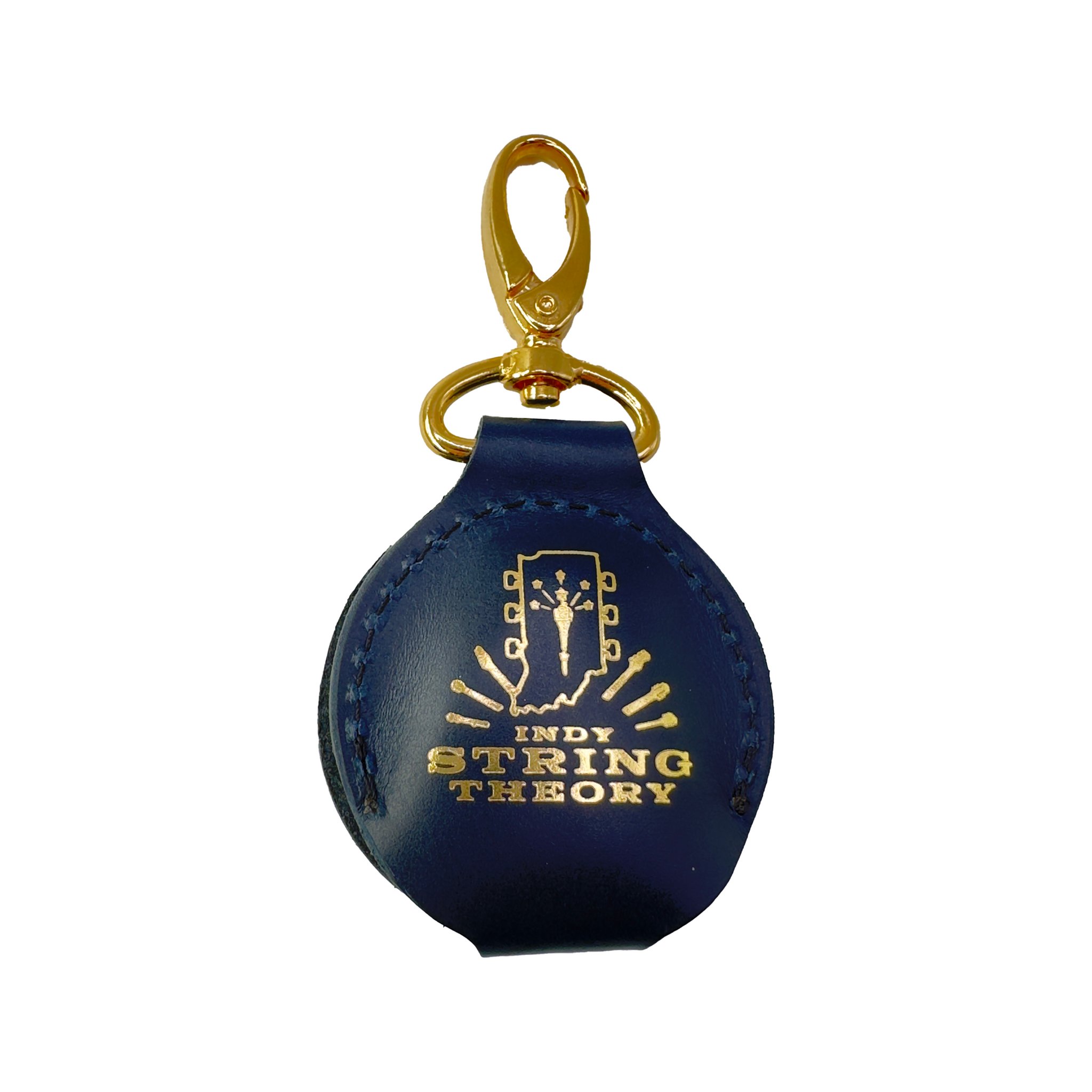 Featuring Navy Blue Dyed Full Grain Oxford Leather the Howl + Hide x Indy String Theory Pick Holder will age and patina uniquely with a beautiful marbling effect, much like the checking on your favorite vintage guitar, making them one-of-a-kind pieces.