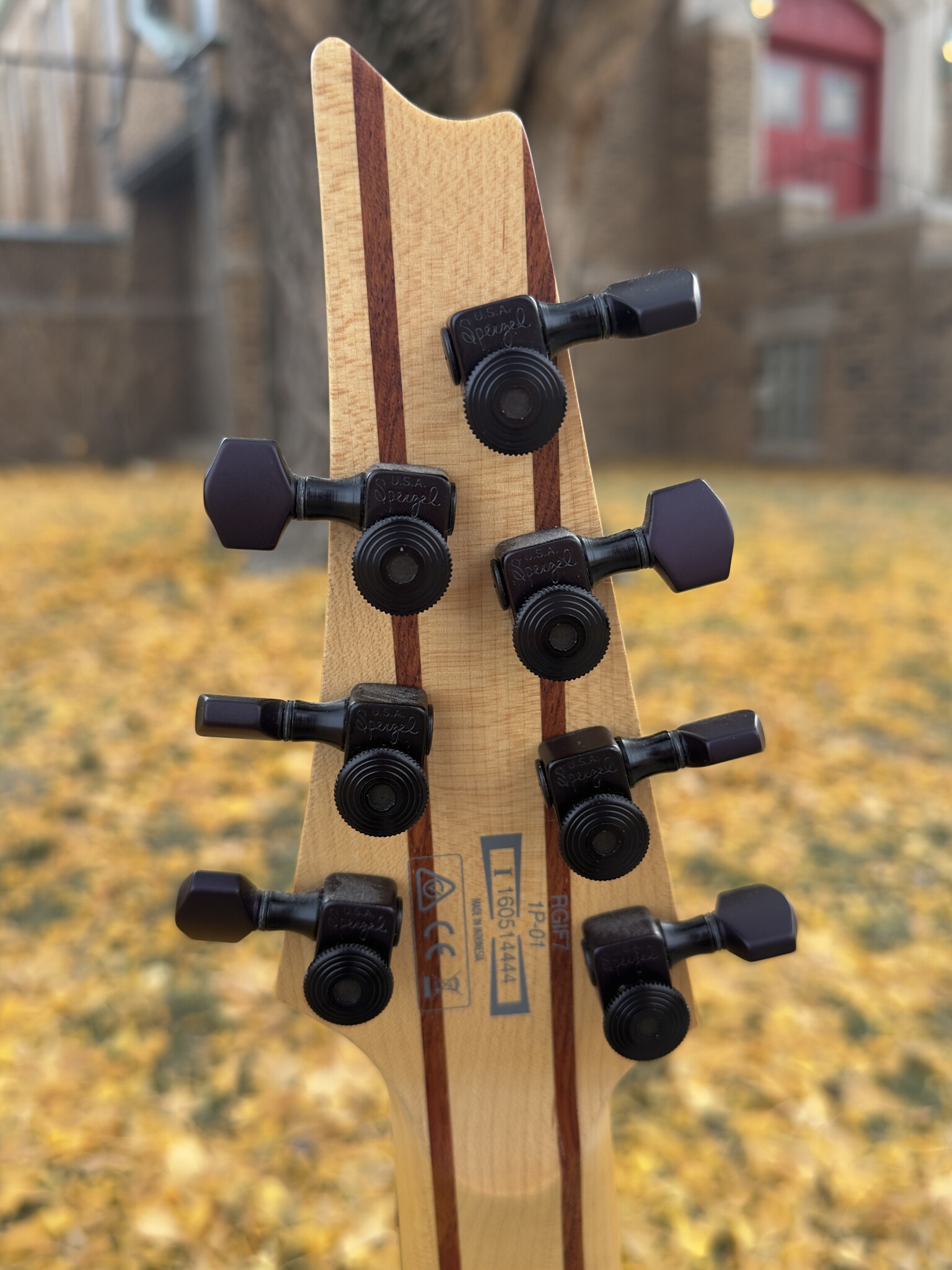 The RGIF7 is a multi scale model featuring fanned frets with a 27" (686mm) scale length at the seventh string and a 25.5" (628mm) scale length at the first string. The equalized string tension this design allows contributes to a more "alive" tone while the fanned fret layout provides an ergonomic platform for the player's hand as it moves up and down the neck facilitating speed and comfort.