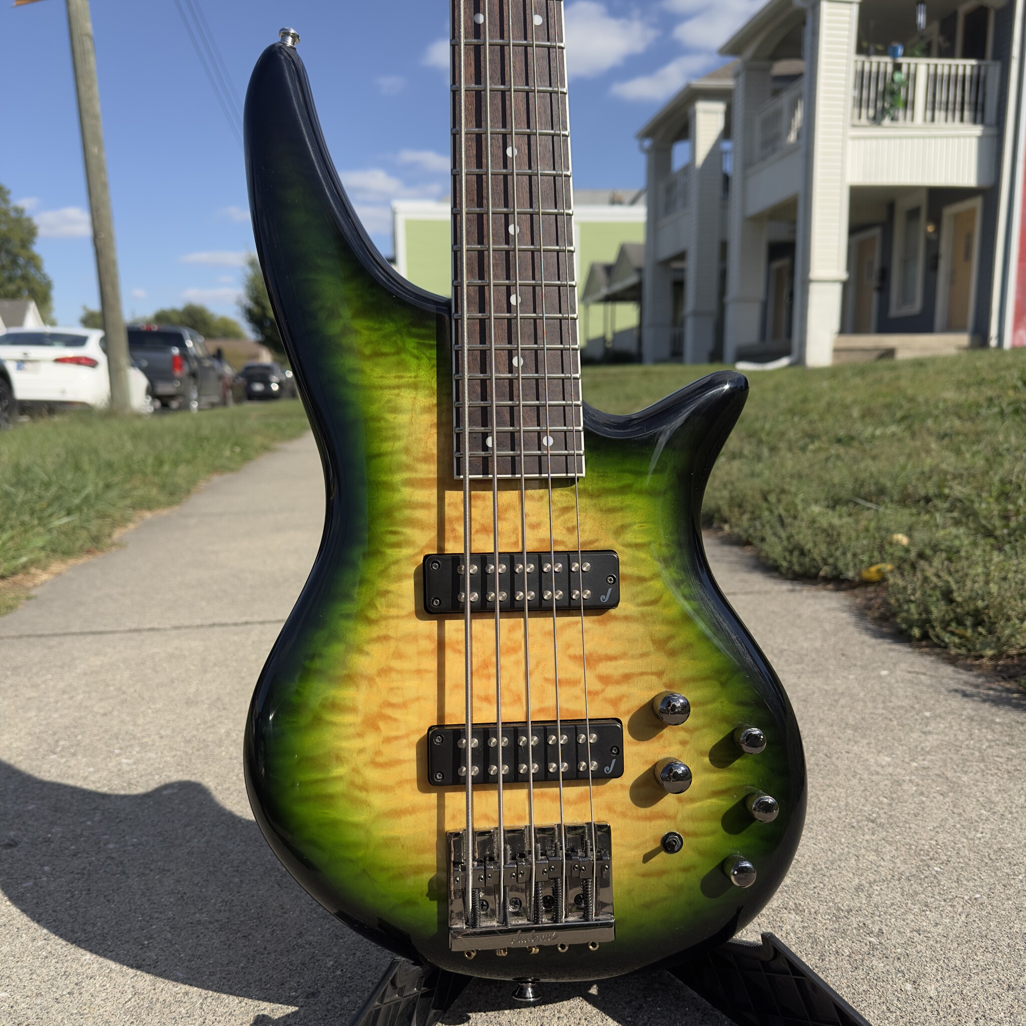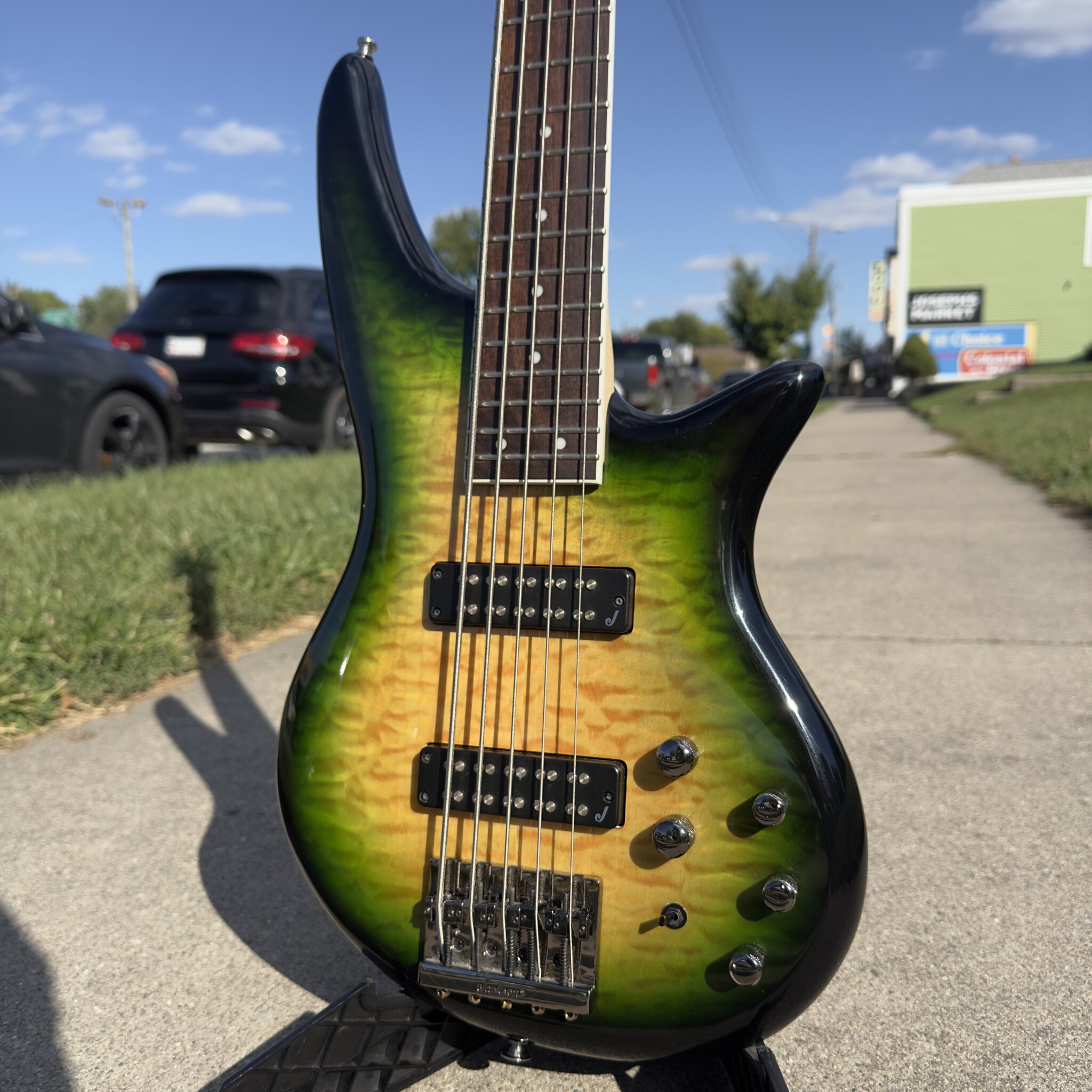 The Jackson® JS Series Spectra Bass JS3QV is an all-new 5-string leviathan instrument where versatile style and enormous sound collide.