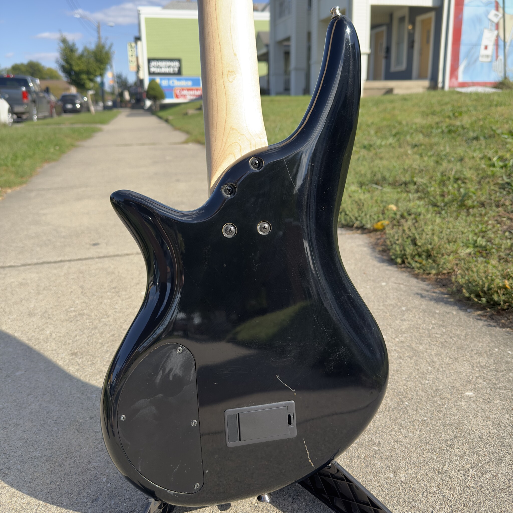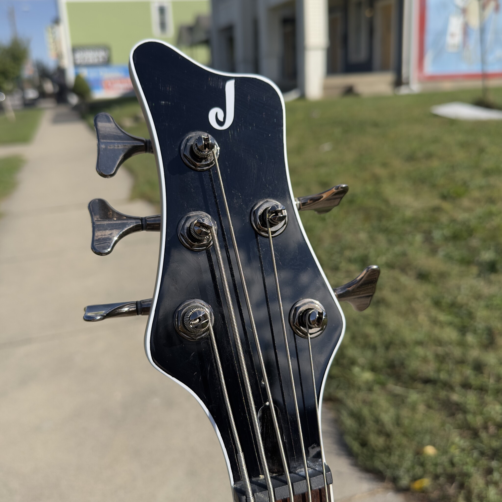 This bass was previously owned and shows some signs of use: Missing Truss Rod Cover, finish swirling, some scratches on the back; but is in overall great shape with little to no fret wear and tons of versatility.