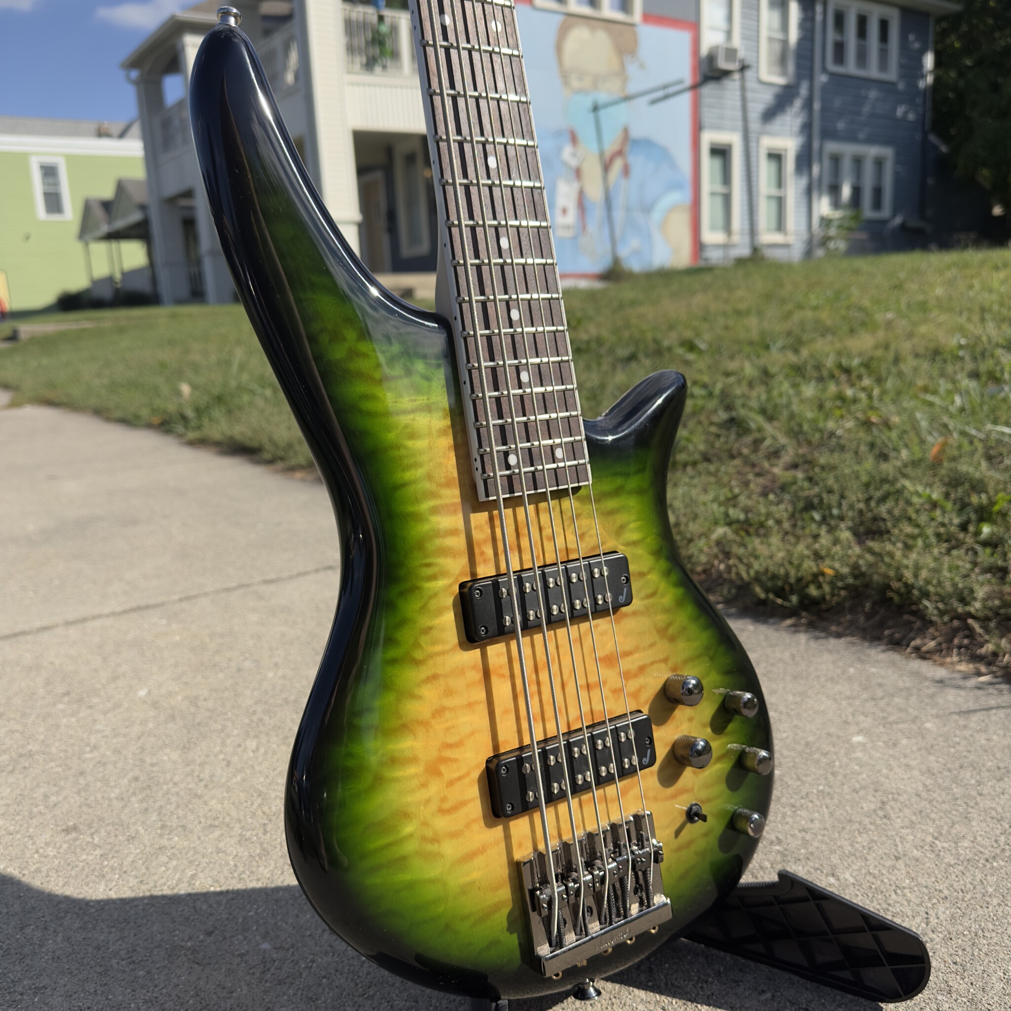 In the shop we have a Jackson Spectra JS3QV 5-String Bass with an out of this world Alien Burst on a Quilt Maple veneer top!