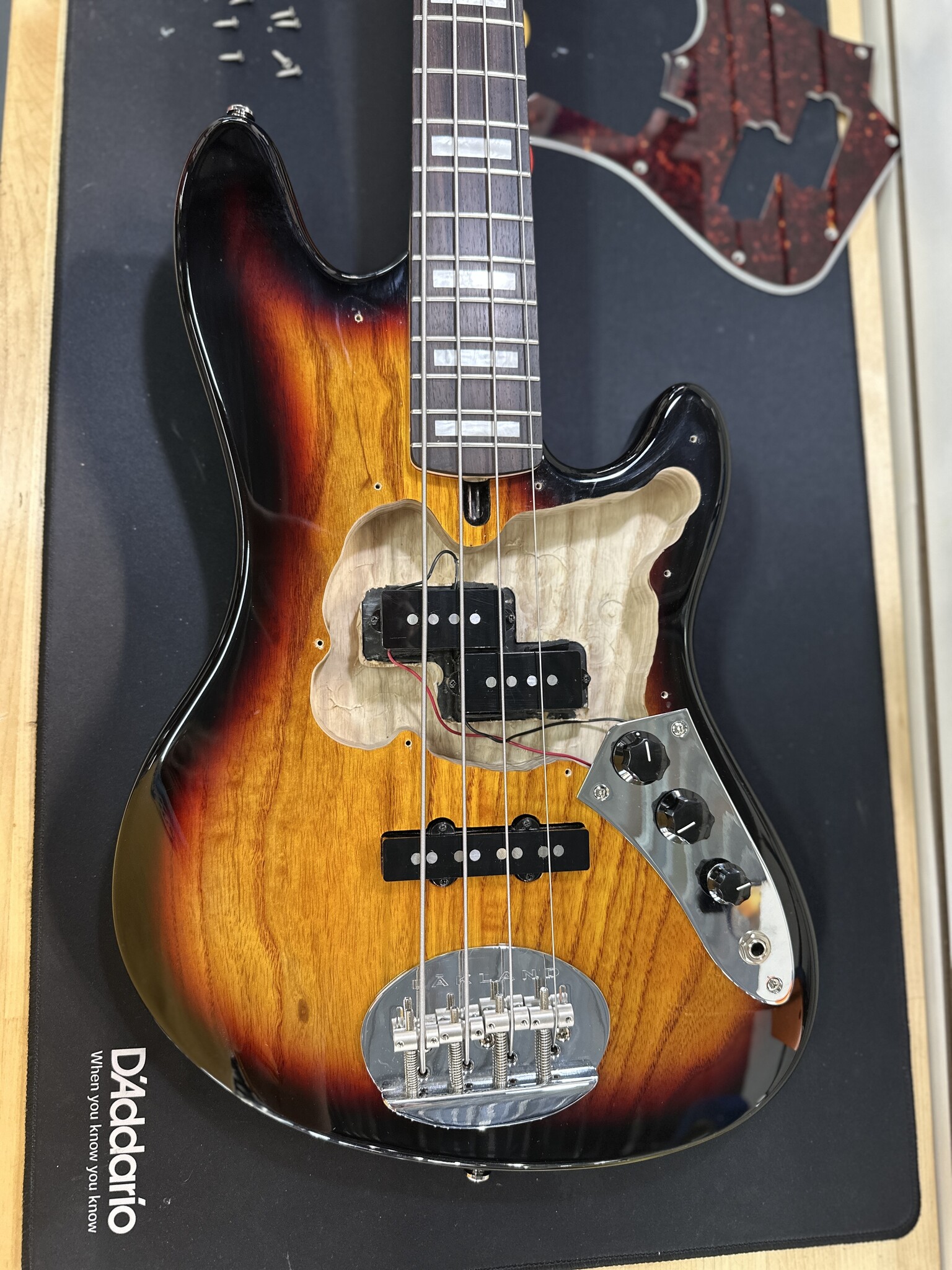 This bass was weight relieved as shown in the last photo. Even after that it does still weigh in at 10.45lbs... thats a lot of tone in a little package!