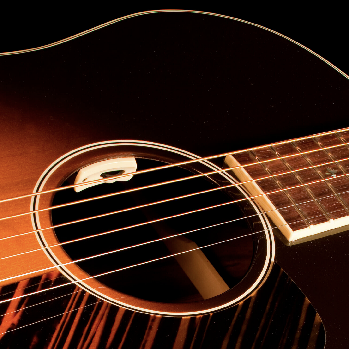 At the heart of the Anthem is a revolutionary microphone engineered to capture a dynamic studio-mic’d sound for any live performance. The TRU•MIC mounts to the underside of the bridge plate and hovers just 3 mm above its surface to take advantage of the PZM or “boundary” effect. This proprietary mounting system, combined with noise cancellation, frees the mic to perform as if it were outside of the guitar in a studio and maintain remarkable feedback suppression for the stage. The result is a balanced frequency response with excellent clarity for the purest sound you have ever heard amplified. We have paired the Element pickup with the TRU•MIC to provide solidity and punch for low frequencies.