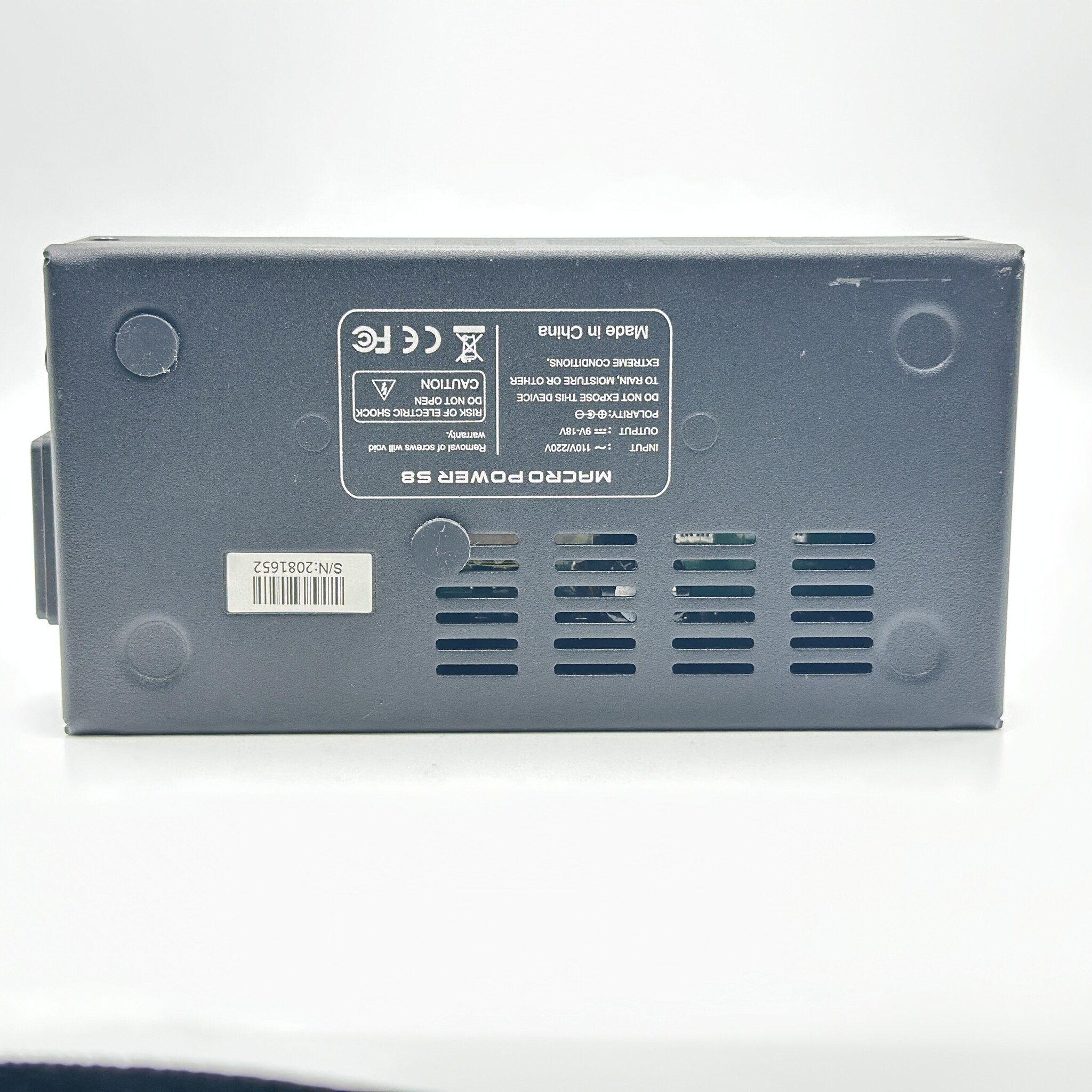 Eight power supply jacks. Five of them are completely functioning independently, which could ensure no interference to each other. And when one of the power supplies is down, other output lines can still work independently.