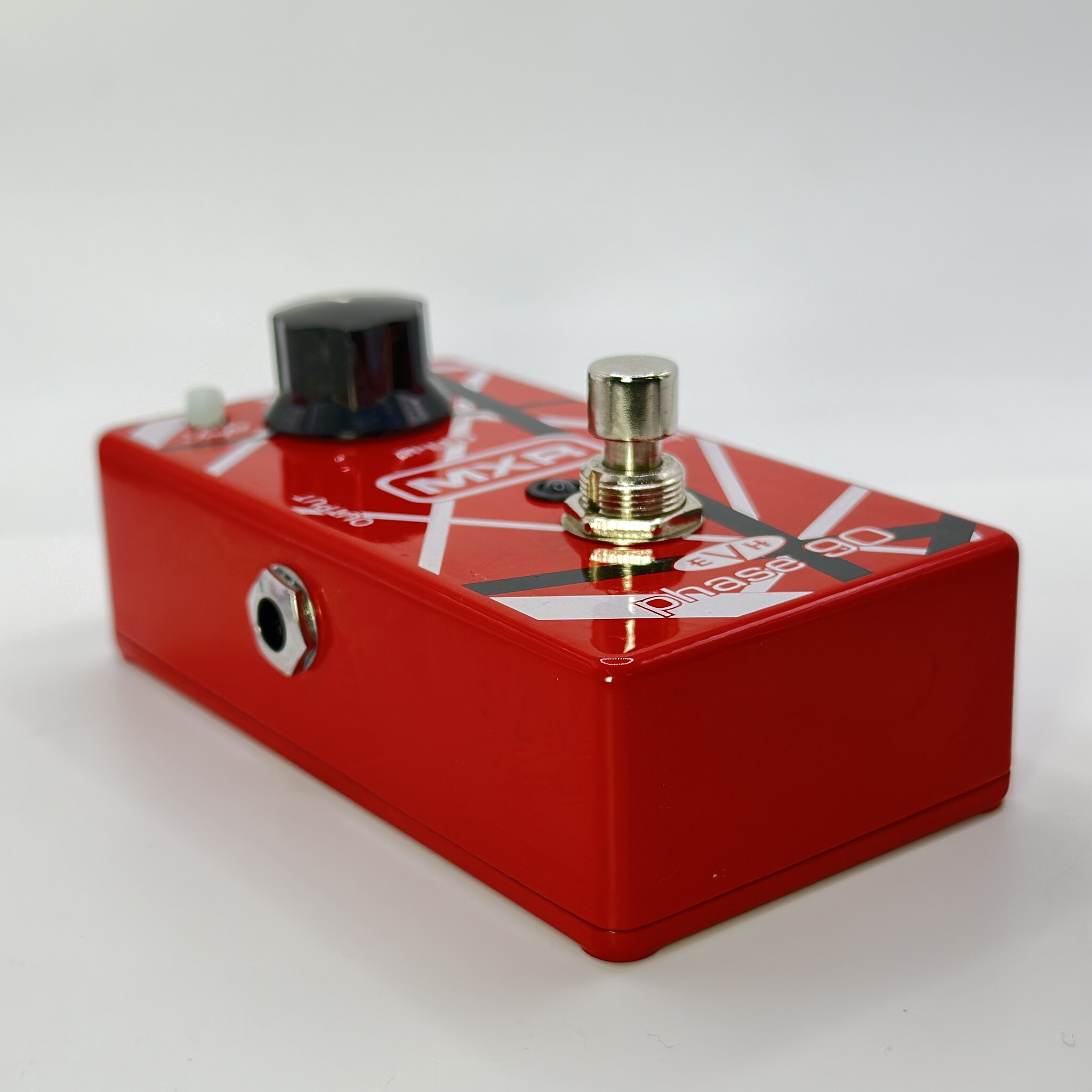 Grab a piece of Eddie's magic with the MXR EVH 90—a collaboration between Eddie Van Halen and Dunlop Manufacturing that represents an updated version of the legendary Phase 90. The EVH 90 will give you the same great spacey swirls and hypnotic warbles that made the Phase 90 famous. But the EVH 90 also features the all-new Script switch that lets you instantly toggle between a vintage, "Script Logo" phase tone and a more modern, in-your-face "Block Logo" phaser. Plus, the EVH 90 sports the greatest graphics in the history of rock: the red, white, and black stripes from Eddie's legendary Frankenstein guitar.