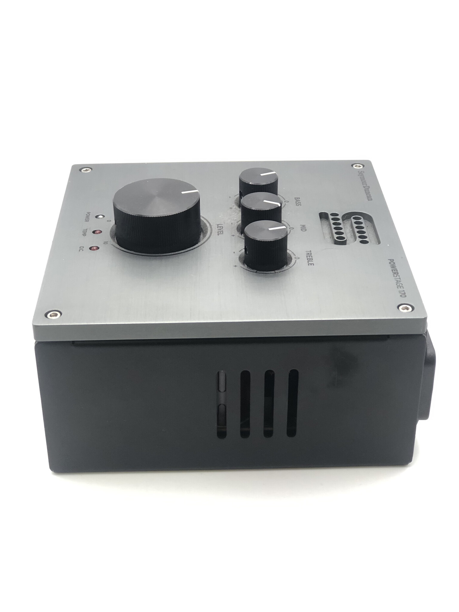 The PowerStage™ 170 is a game-changing product for guitar players that have dreamed of the day their entire rig can live on their pedal board. Maybe you love your tube amp but don’t want to lug it around. Or perhaps you use a modeler that has a ton of functionality but doesn’t sound as good when plugged in to your amp. Do you dread fly dates or gigs because you’re never sure what your backline will be? This is a 170-watt power amp with a beautiful clean preamp section and 3-band global EQ, making it the perfect complement to pedalboards and digital modeling devices. It is small enough to fit directly on a pedalboard or in any gig bag, lightweight enough for fly dates, and attractive enough to look great at a church or coffeehouse gig, as well as in a home office or dorm room.
