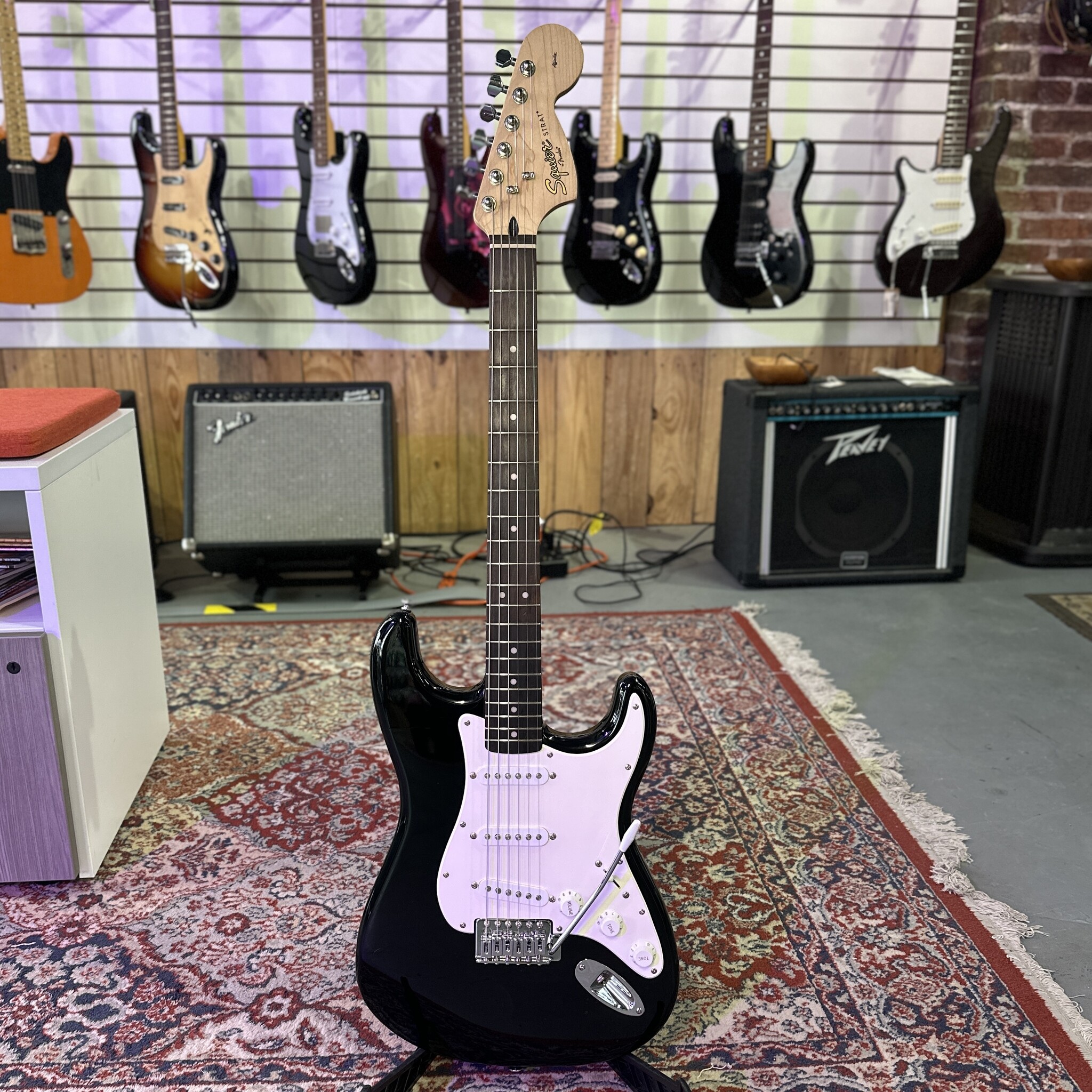 In the shop we have a used Squier Affinity Strat with Gig bag!